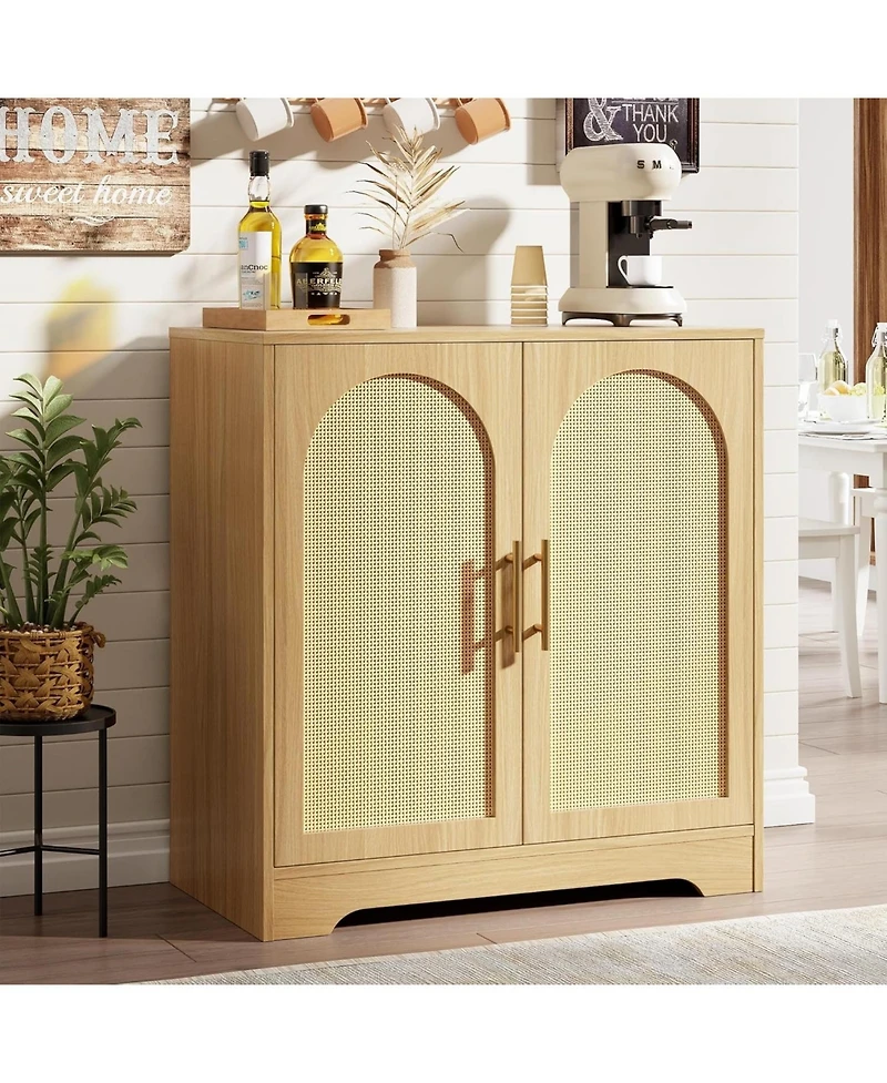 This sideboard cabinet features 2 rattan doors, seamlessly blending contemporary design with practical storage space. It creates warm ambiance for dinning rooms or living rooms.
