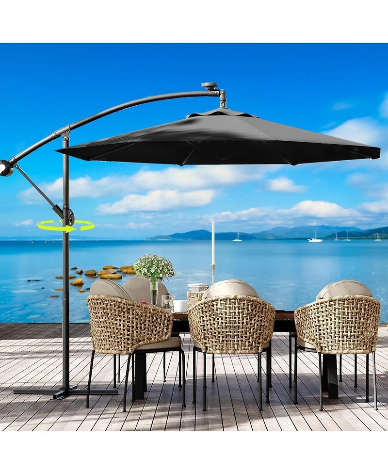 gaomon offset patio umbrella with weighted base, 360degree(s) rotation and infinite tilt for versatile shade on decks, poolsides, lawns, backyards in San Juan, PR