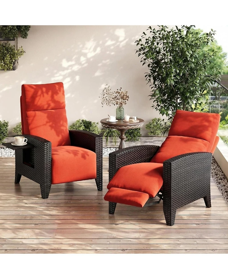 gaomon Outdoor Reclining Patio Chair with Adjustable Backrest Footrest All Weather Wicker Chaise Lounge Air Pump 150degree(s) Lay Flat