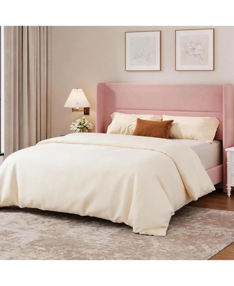 gaomon Queen Velvet Bed Frame with Wingback Headboard, Upholstered Platform Bed, No Box Spring Needed