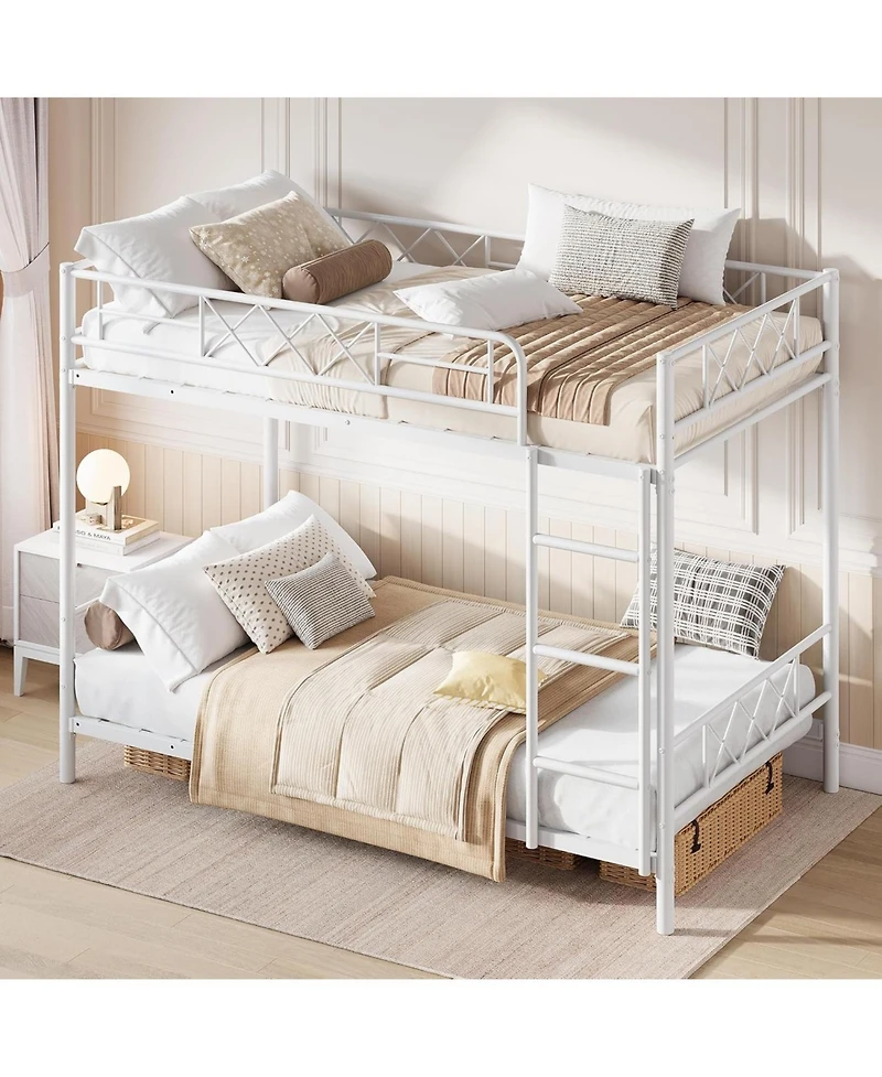 Featuring a Robust Steel Frame: This twin-over-twin bunk bed is constructed from durable steel with a powder-coated finish. The reinforced frame is designed for stability, with an optional wall-mount bracket included to provide additional anchoring for enhanced security.