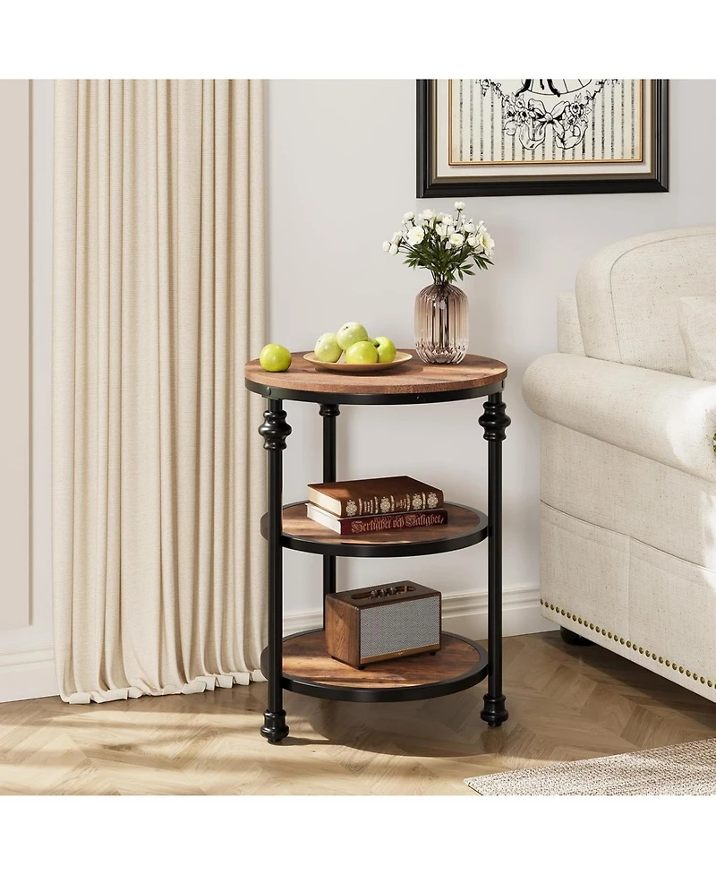 gaomon Round End Table, Small Side Table with 3 Shelves for Living Room, Bedroom, Night Stand Accent Coffee Table with Steel Frame in San Juan, PR