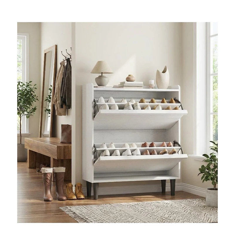 Refined Entrance Statement: This cabinet enhances any entryway or living space with its streamlined profile and inviting aesthetic. It seamlessly integrates into your existing decor, serving as both a stylish accent and a highly functional storage piece that elevates everyday organization.customizable Interior Layout: Engineered for versatile storage, the cabinet includes a removable interior panel that can be repositioned or taken out entirely. This adaptable system creates dedicated spaces for a wide range of footwear, from everyday styles to taller options, ensuring everything remains neatly arranged and within reach.convenient Space-saving Access: The practical flip-down door design offers instant access to your shoes while maintaining a clean, minimal footprint against the wall. Included mounting hardware allows for secure installation, providing added stability and peace of mind for busy households.built For Lasting Performance: Constructed from high-grade