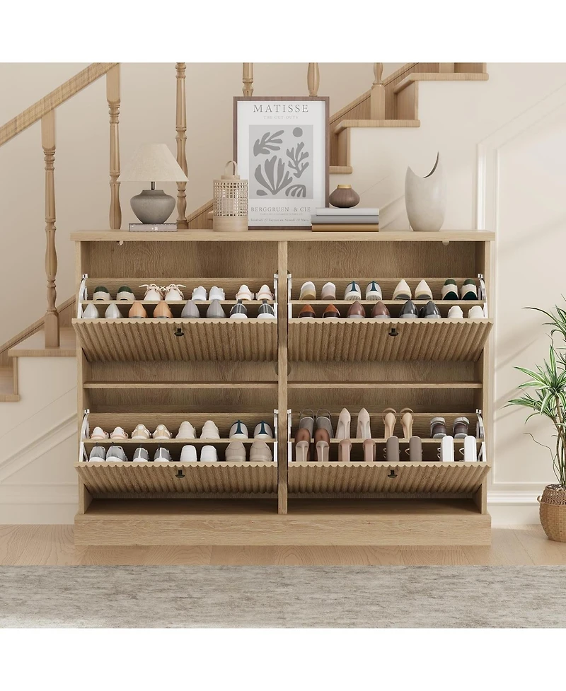 gaomon Shoe Cabinet with 4 Flip Drawers Freestanding Cabinet with Adjustable Shelves and Thicken Top Fluted Design Wooden Narrow Shoe Organizer