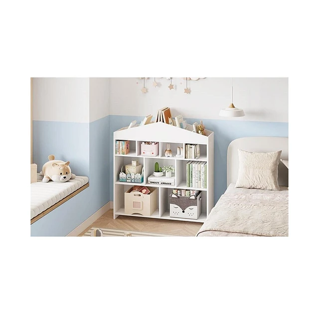 gaomon White Wood 1 White Rectangular Toy Storage Organizer 9-Cubby Kids Bookshelf