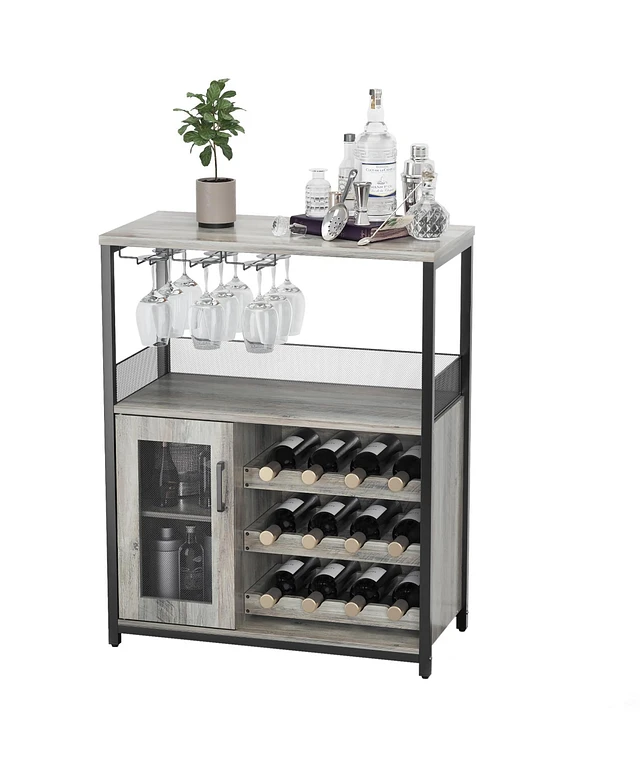 gaomon Wine Bar Cabinet with Detachable Wine Rack, Bar Rack Cabinet with Glass Holder and 1 Drawer, Mesh Door