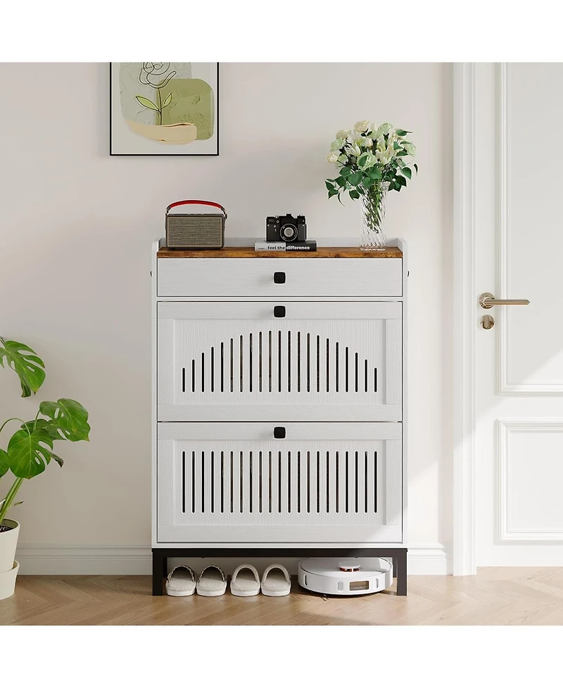 gaomon Wooden Shoe Cabinet with 2 Hollow-Panel Flip Drawers and Top Drawer