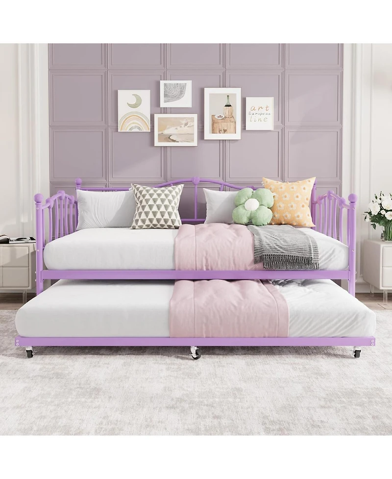 gaomonl Daybed with Trundle Heart Design Noise Free Platform Sofa Bed Steel Slats Space-Saving Bedroom Purple in San Juan, PR