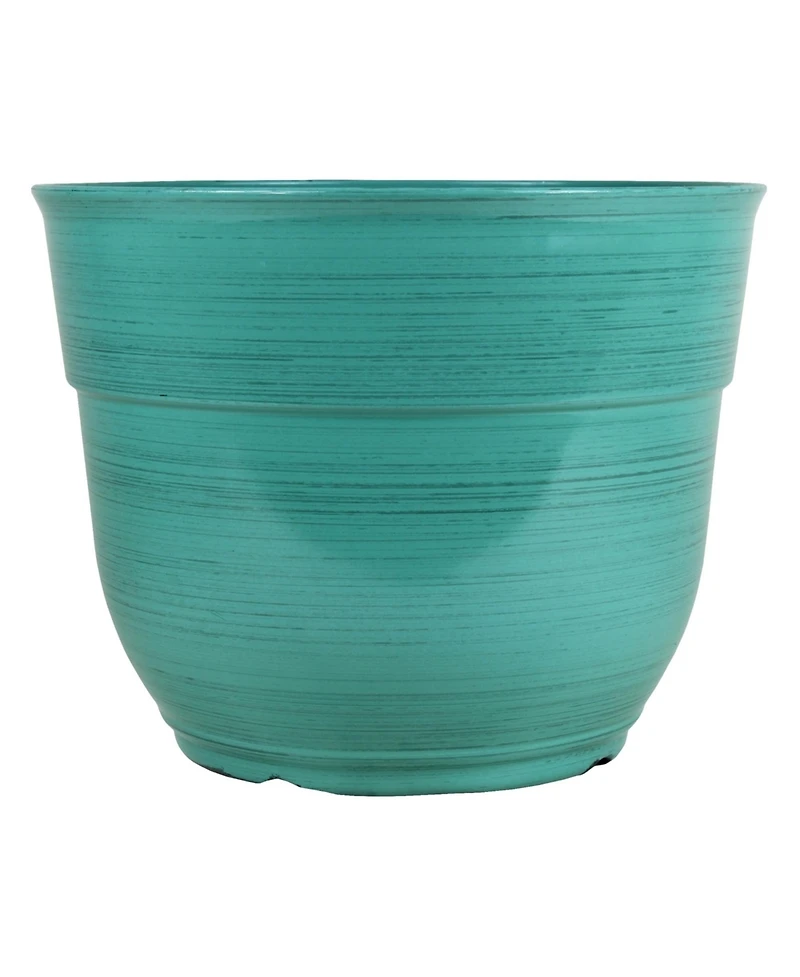Garden Elements Glazed Brushed Happy Large Plastic Planter Dark Aqua 15 Inch