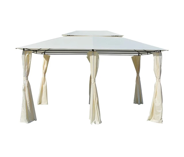 Outsunny 10' x 10' Patio Gazebo Outdoor Canopy Shelter with Aluminum Frame, Double Tier Roof, Netting and Curtains for Garden, Lawn, Backyard and Deck