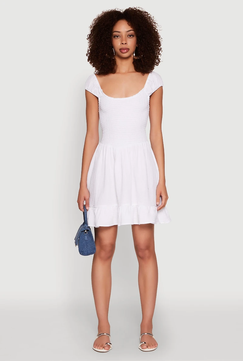 Get ready to turn heads with the Gauze Knit Smocked Skater Dress, the perfect blend of cute and comfy for your casual days. Its classic fit and flirty fit and flare silhouette make it a go-to for effortless style. Featuring puff sleeves and a scoop neck, this short-length dress is all about those adorable details that make you feel confident and free. Whether you're brunching with friends or just vibing on a weekend, this dress is your new bestie for looking fabulous without trying too hard.