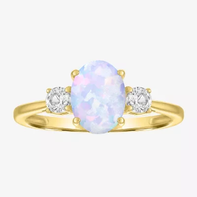 Gemstone 10K Gold 3-Stone Oval Cocktail Ring