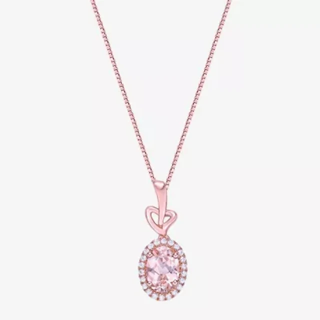 Womens Genuine Gemstone & 1/5 CT. T.W. Genuine Diamond 10K Gold Oval Pendant Necklace