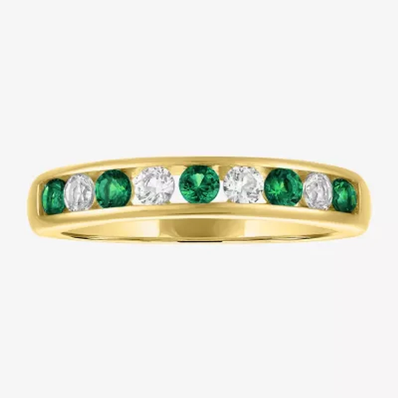 Add a touch of vibrant elegance to your hand with this 14K gold over silver sterling silver band. The beautiful ring features a captivating Lab-Created gemstone accent. It is perfect for stacking with other rings or wearing on its own as a subtle yet striking statement piece.