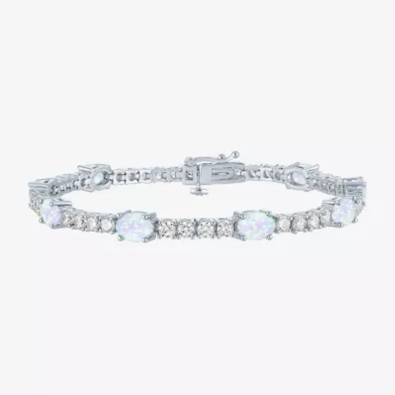 Adorn yourself with a personalized tennis bracelet like this chic sparkling style which features your birth month gemstone as part of the design. Crafted from Pure Silver Over Brass, this bracelet features an array of round and oval-cut gemstones with a box clasp closure.