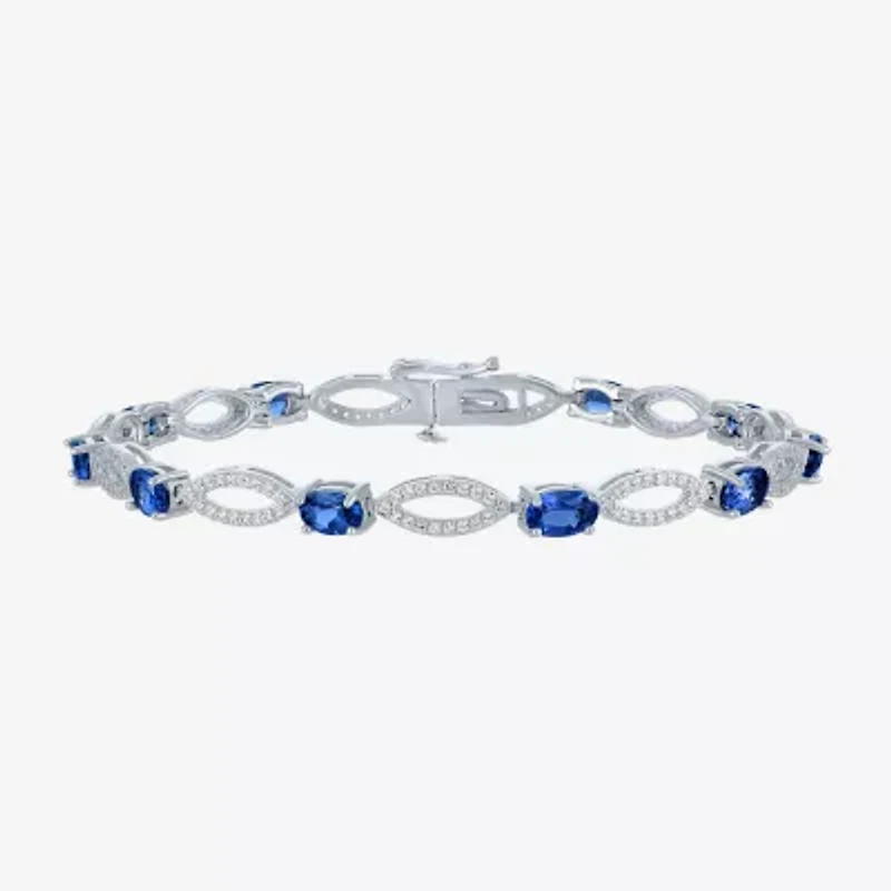 Update your jewelry collection with this sterling silver oval tennis bracelet. This stunning bracelet showcases 10 mined blue topaz stones and 198 Lab-Grown sapphires. Perfect for both formal and casual wear.