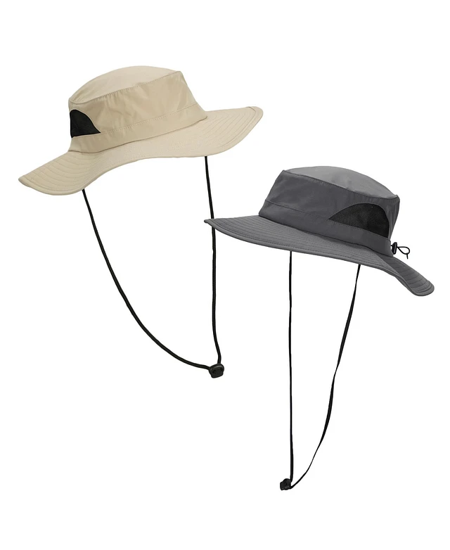 Generic Men's 2-Pack Charcoal & Khaki Wide Brim Technical Boonie Sun Hat with Vented Mesh Piecing