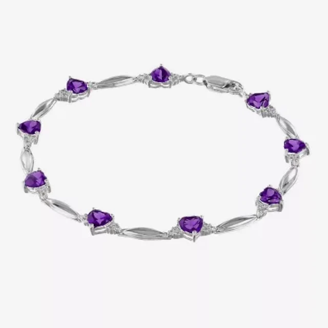 Genuine Amethyst & Diamond Accent Heart-Shaped Sterling Silver Bracelet