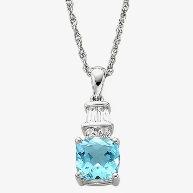 Genuine Blue Topaz and Lab-Created White Sapphire Pendant Necklace