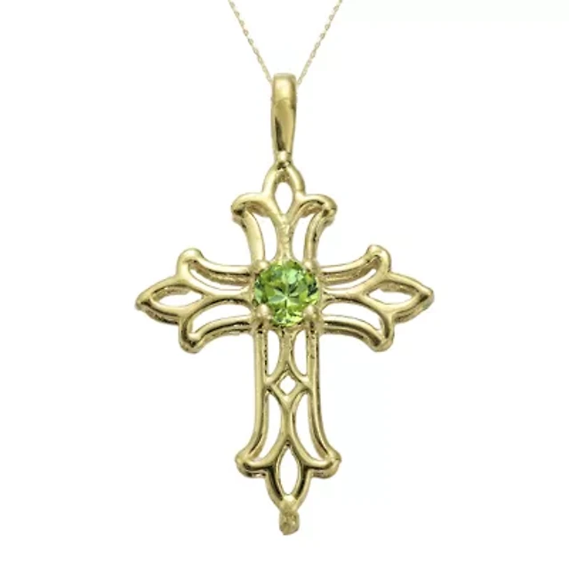 Genuine Peridot 10K Yellow Gold Cross Pendant Necklace