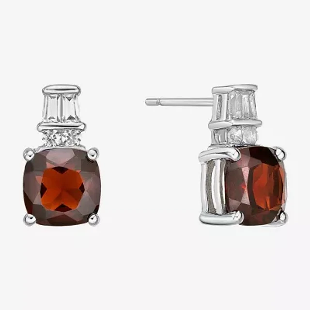Genuine Red Garnet Sterling Silver 10mm Cushion Stud Earrings