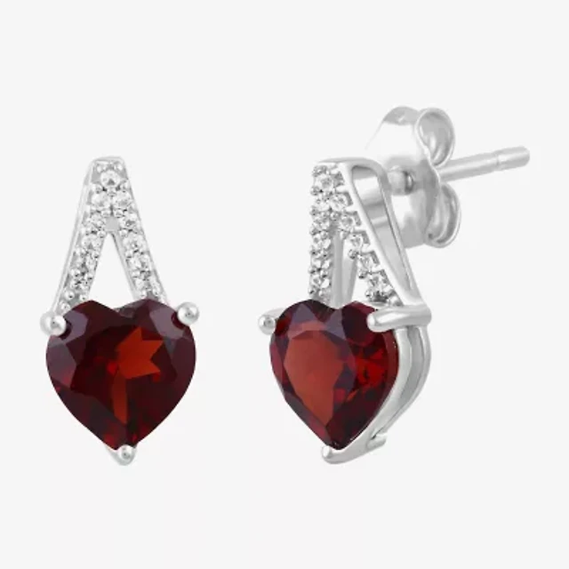 Genuine Red Garnet Sterling Silver 17.7mm Heart Stud Earrings