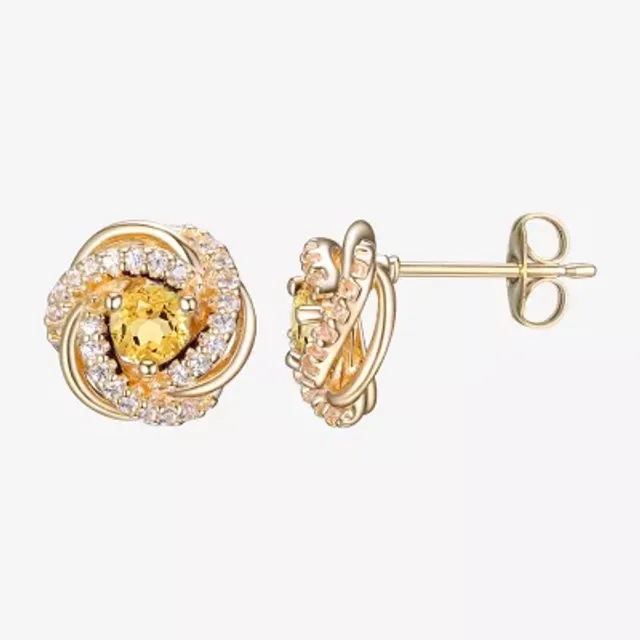 Genuine Yellow Citrine 18K Gold Over Silver 10.7mm Stud Earrings
