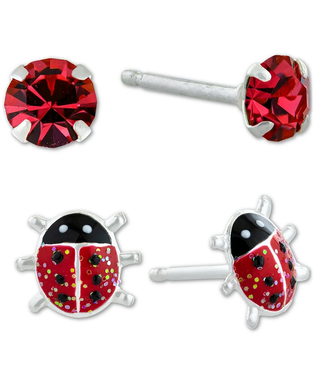 Giani Bernini 2-Pc. Set Crystal Solitaire & Enamel Ladybug Stud Earrings in Sterling Silver, Created for Macy's