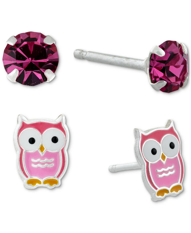 Giani Bernini 2-Pc. Set Crystal Solitaire & Enamel Owl Stud Earrings in Sterling Silver, Created for Macy's