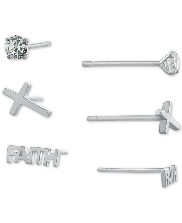 Giani Bernini 3-Pc. Set Cubic Zirconia & Faith-Themed Stud Earrings in Sterling Silver, Created for Macy's