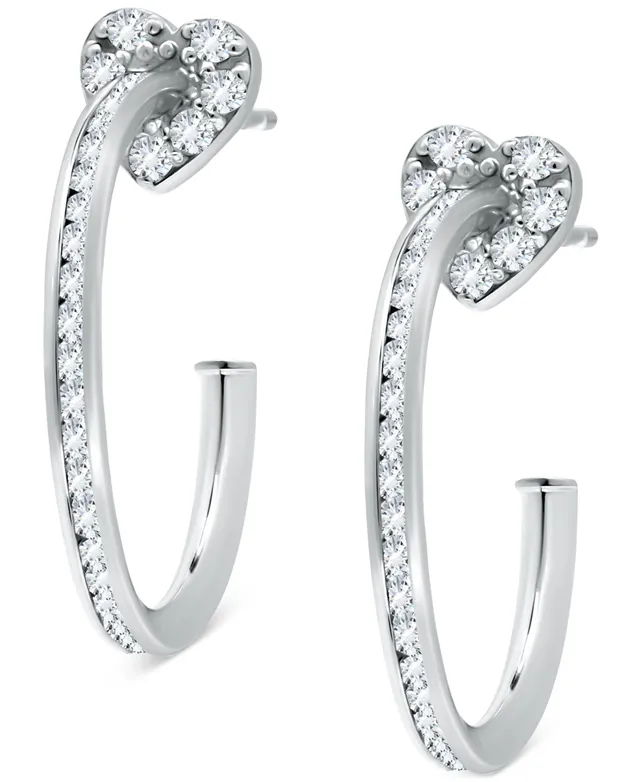 Giani Bernini Cubic Zirconia Heart Charm Hoop Earrings (1-1/20 ct. t.w.), Exclusively at Macy's
