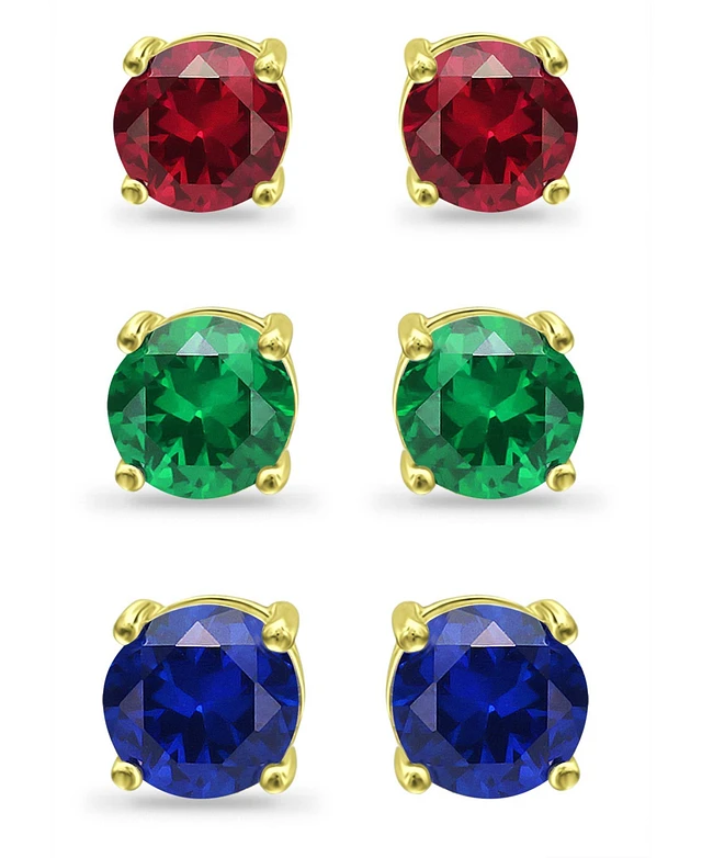 Giani Bernini Lab Grown Green Quartz, Lab Grown Ruby and Simulated Blue Sapphire Stud Earring Set