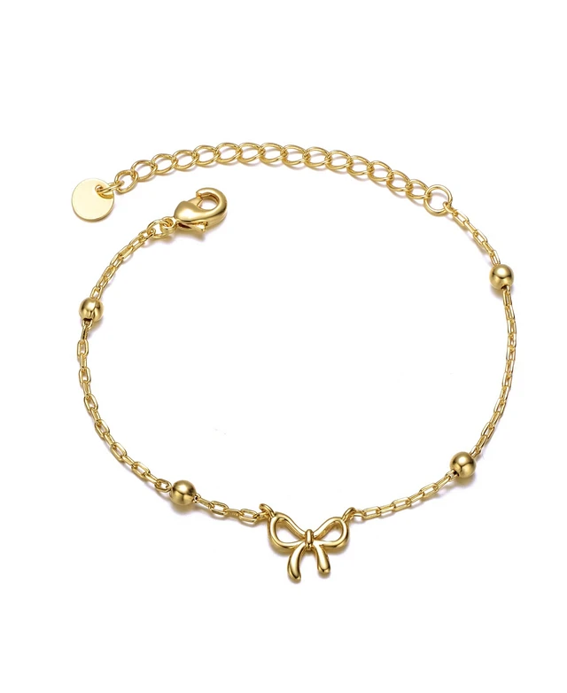 GiGiGirl 14k Yellow Gold Plated Adjustable Bracelet with Ribbon Charm and Beads for Kids