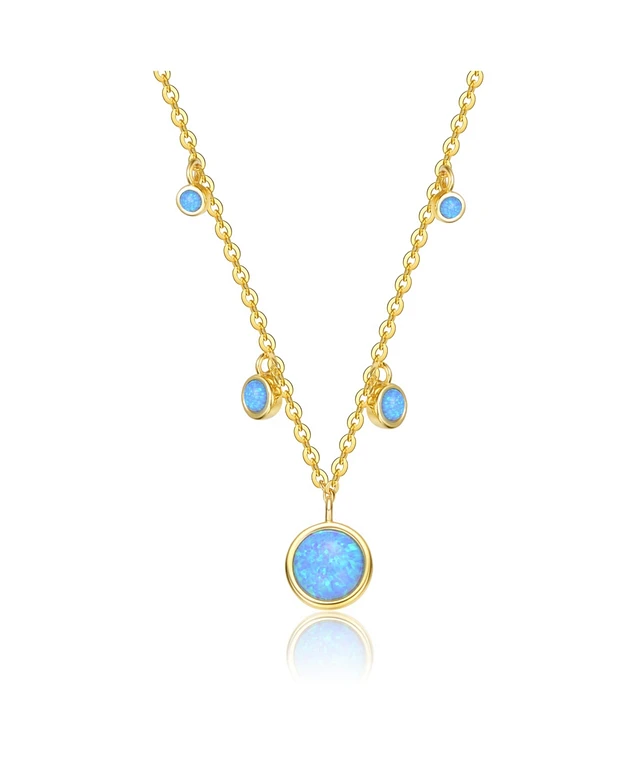GiGiGirl Kids/Young Teens Sterling Silver 14K Gold Plated and Opal Cubic Zirconia Round Spring Ring Pendant Necklace