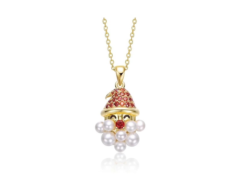 GiGiGirl Teens 14K Gold Plated Pearl Cz Whimsical Santa Pendant Necklace