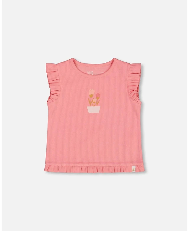 Girl Rib Tank Top With Frills Coral Pink - Toddler|Child