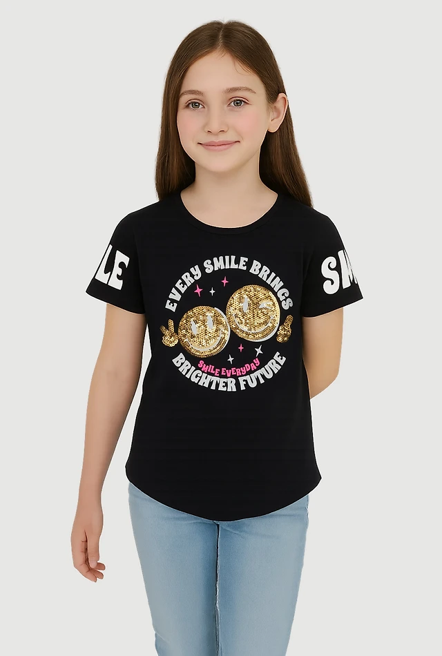 Little Girls Sequin Smile Graphic T-Shirt