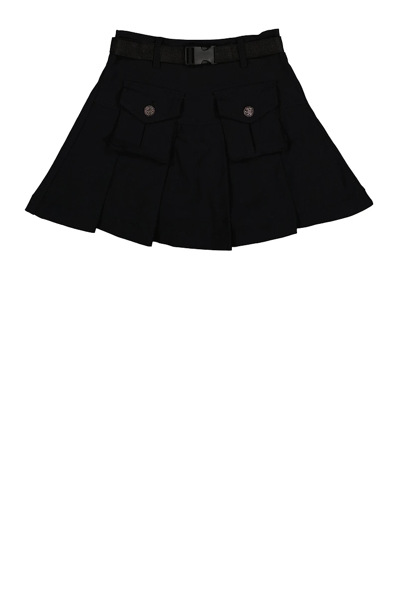 Girls Camo Belted Cargo Pocket Pleated Skirt