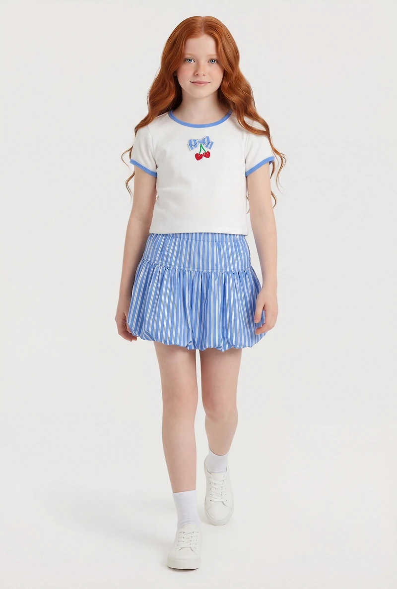 Girls Cherry Graphic Striped Drop Waist Bubble Hem Skort