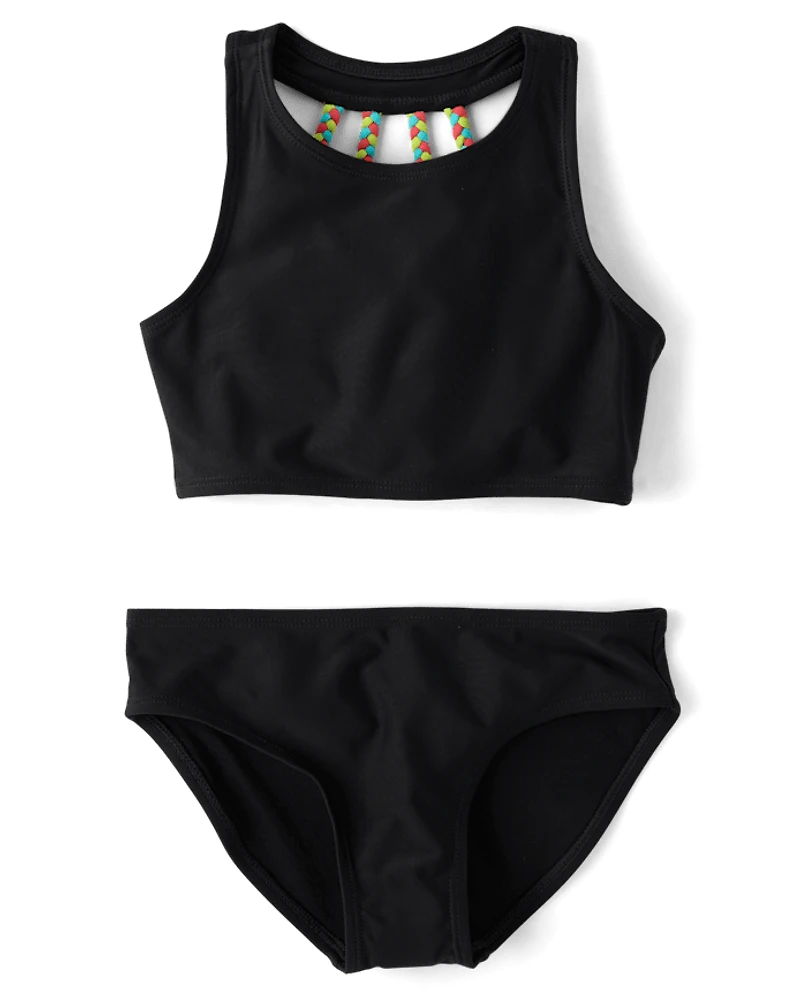 Girls Contrast Braided Tankini Swimsuit