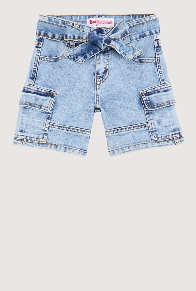 Girls Denim Belted Cargo Pocket Shorts, Blue, Size 7
