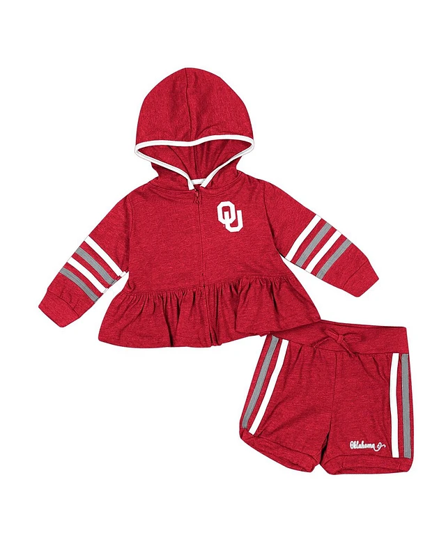 Girls Infant Colosseum Crimson Oklahoma Sooners Spoonful Full-Zip Hoodie and Shorts Set