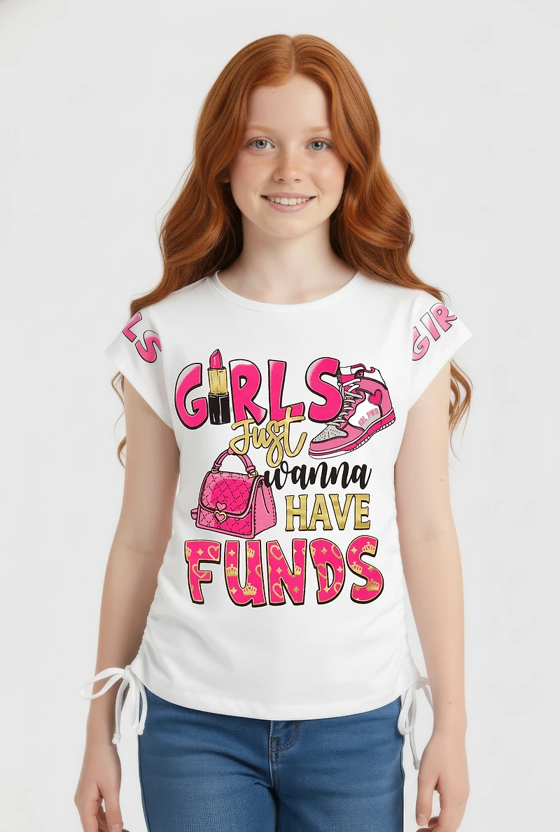 Girls Just Wanna Have Funds Ruched Side Graphic Tee
