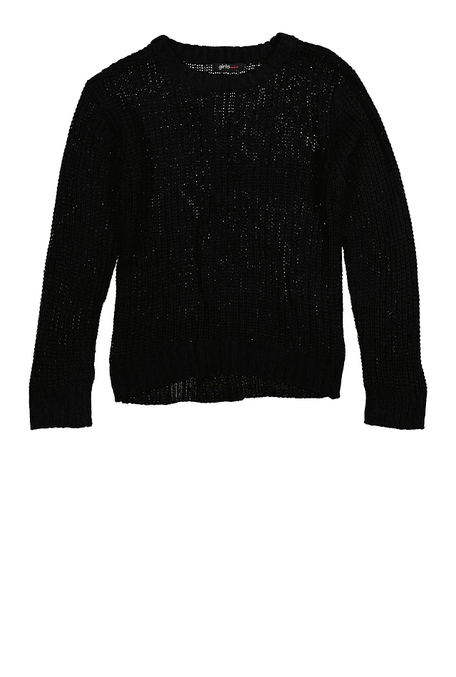Girls Knitted Crew Neck Sweater, Black, Size 7-8