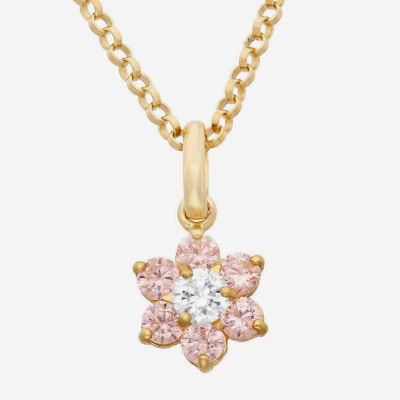 Girls Lab Created Pink Cubic Zirconia 14K Gold 14K Gold Filled Flower 15 Inch Pendant Necklace