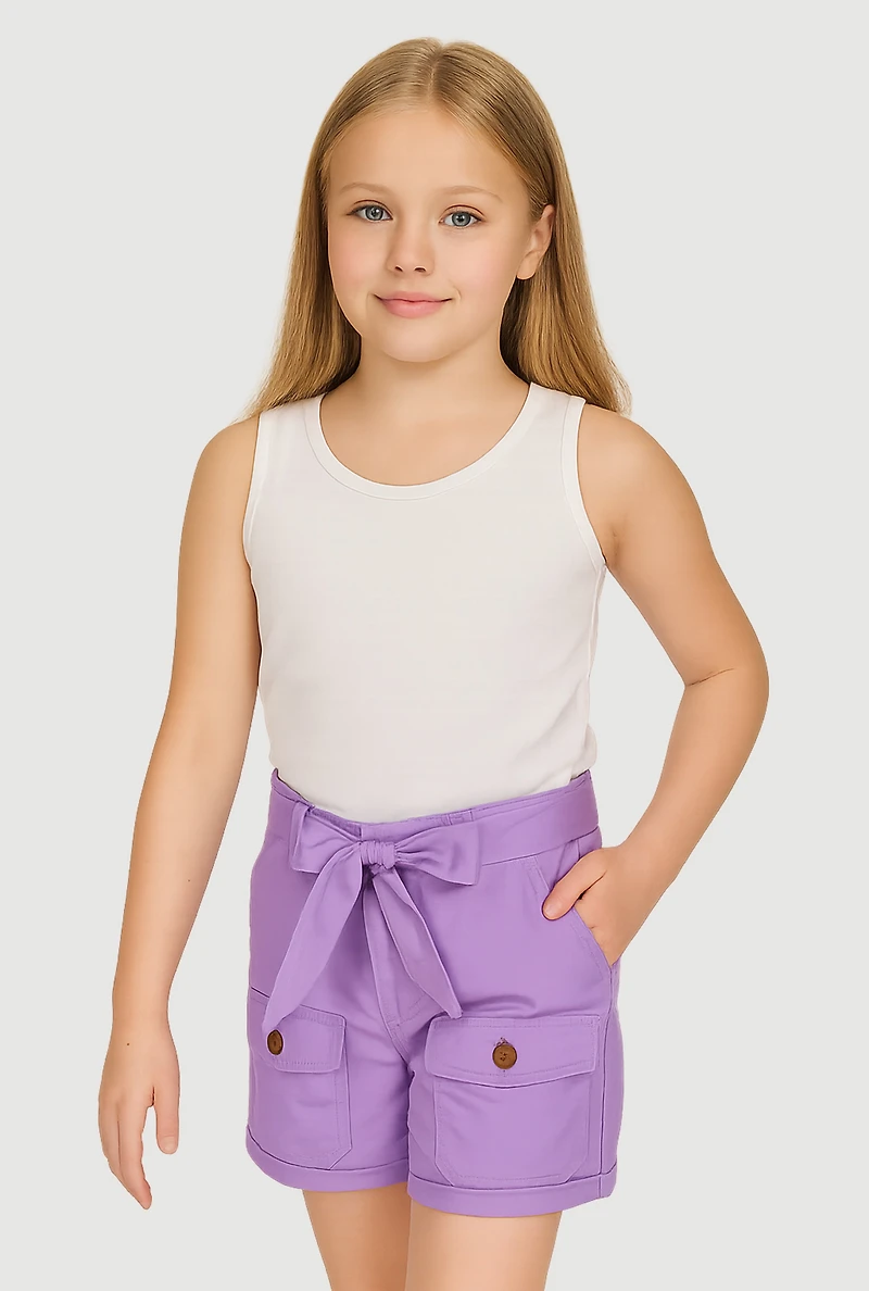 Girls Poplin Tie Waist Belted Cargo Pocket Shorts in San Juan, PR