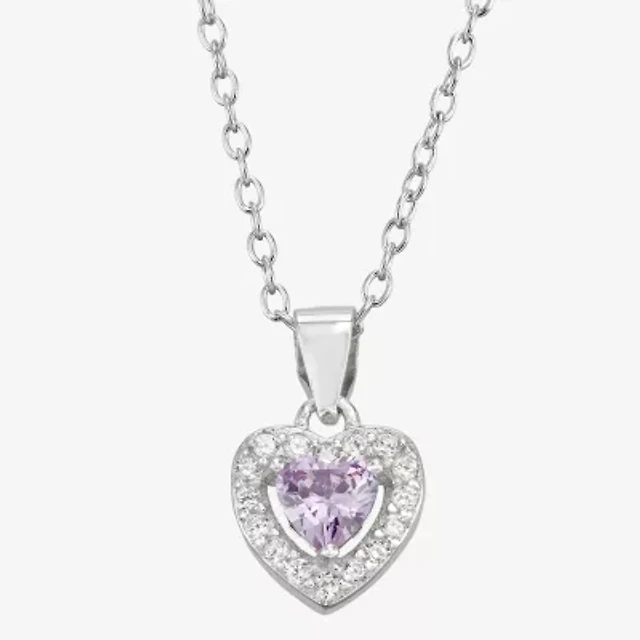 Girls Cubic Zirconia Sterling Silver Heart 15 Inch Pendant Necklace