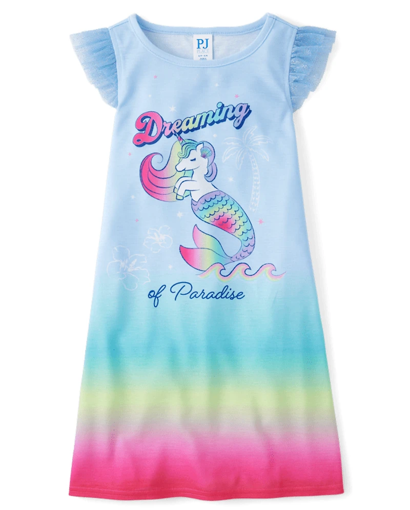 Girls Rainbow Unicorn Mermaid Flutter Nightgown