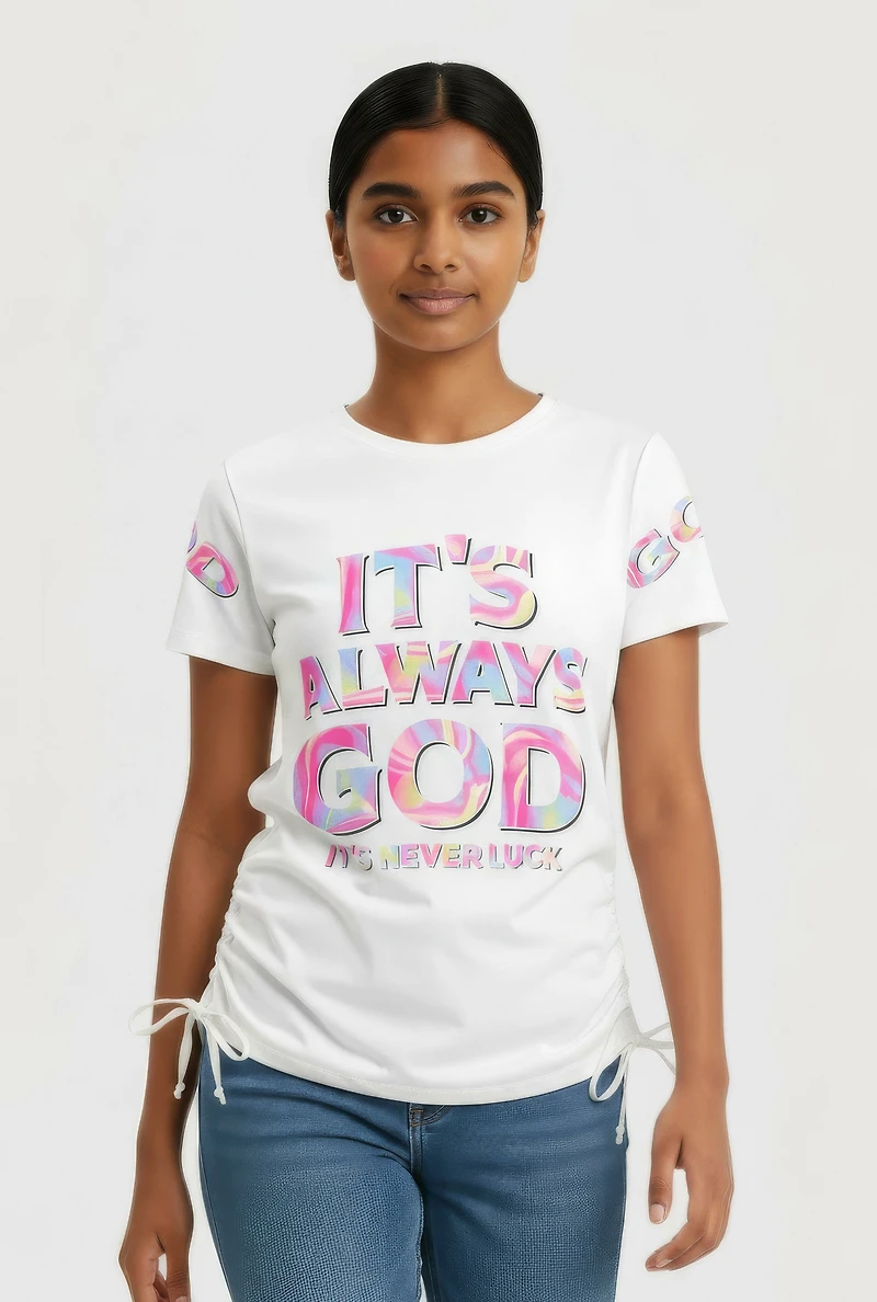 Girls Side Ruched Always God Graphic Tee