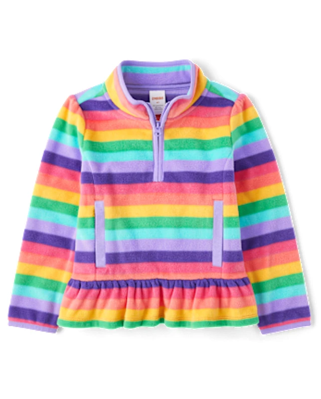 Girls Striped Microfleece Half Zip Pullover - Little Essentials